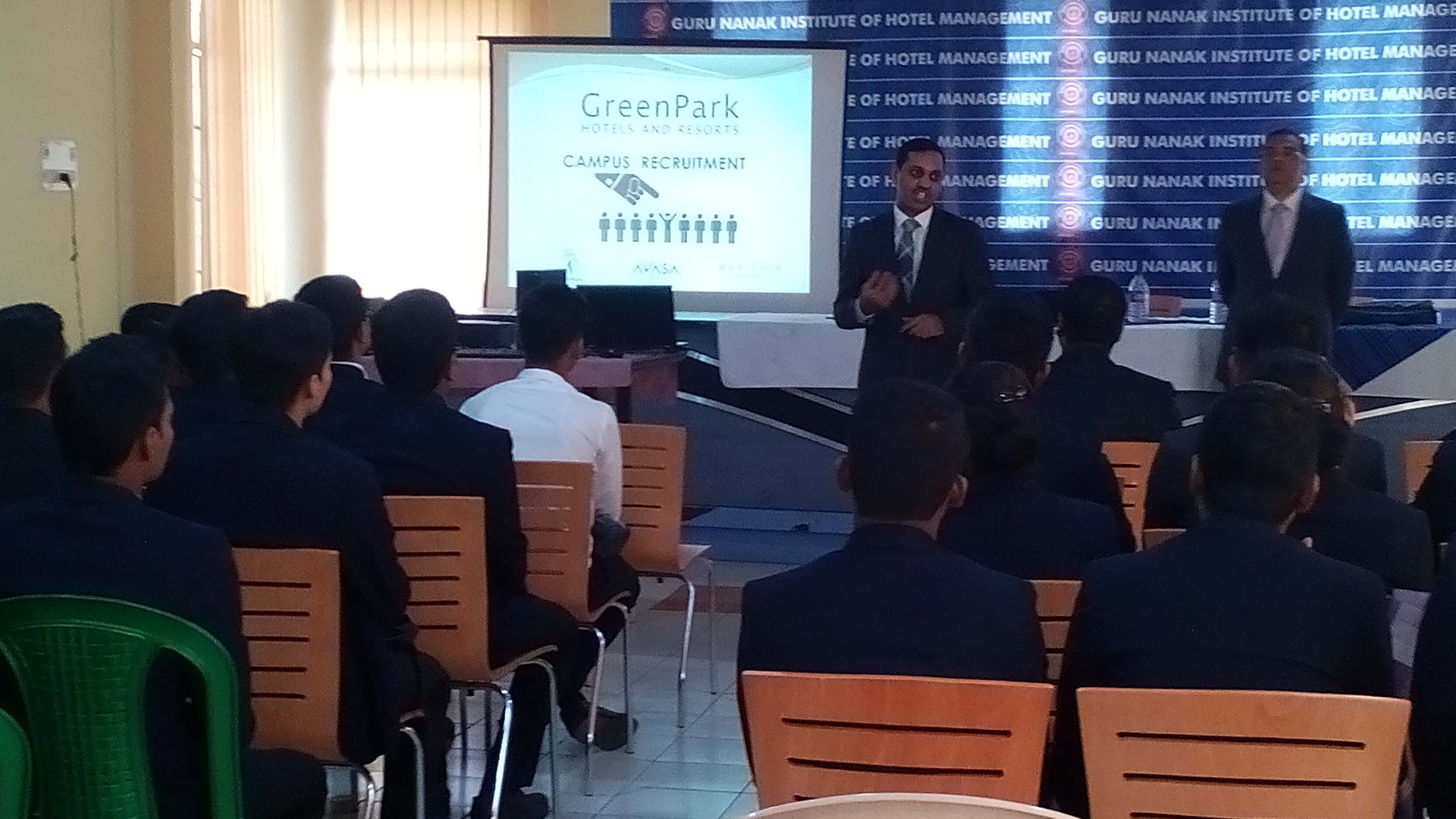 On campus recruitment drive by Green Park Hotels Pvt Ltd. at GNIHM. Seven students got selected for "Hotel Operations Trainee" position. The traineeship will be for a tenure of one year post which they will be evaluated based on their performance. During this period, they will be provided a stipend of 18,000 INR per month.